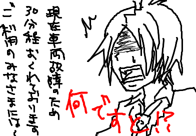 テストだというのに、電車が故障しました。あっはははは。試験開始二十分後に教室に入りました。ちなみに三十分経過すると教室へ入れなくなります。あっはははは……あっぶねぇ!